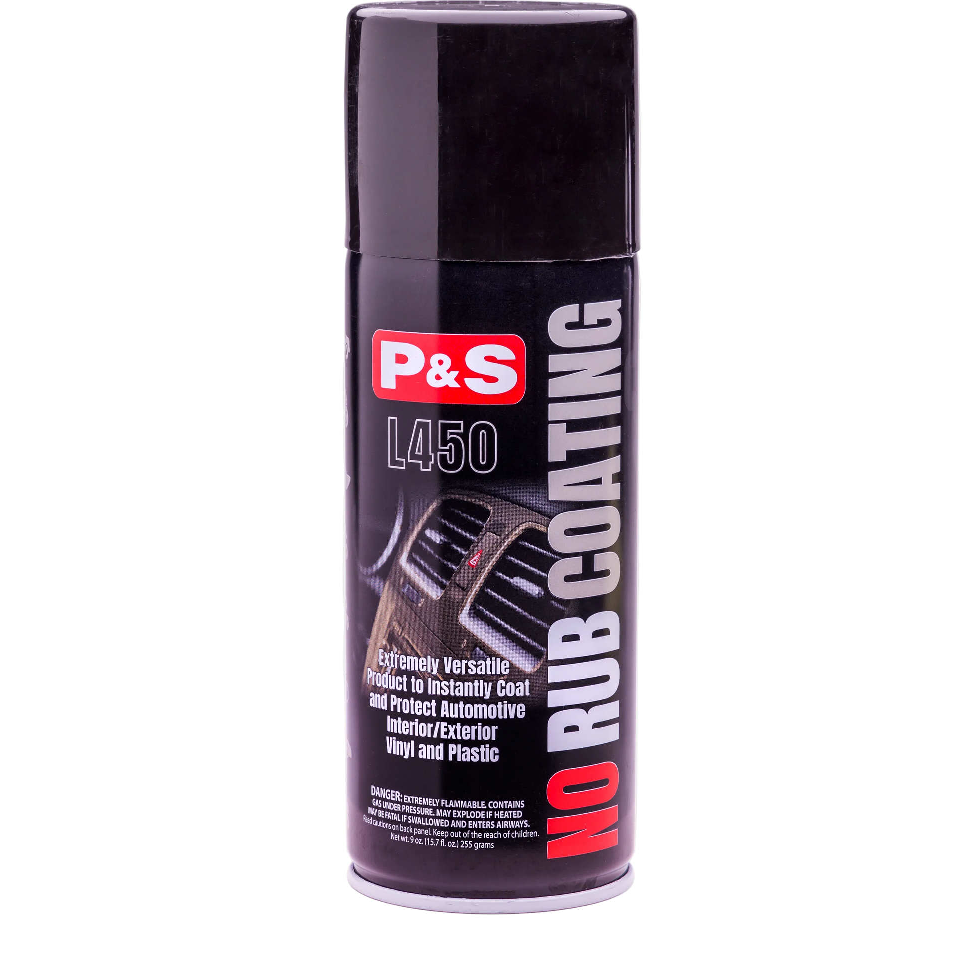 No Rub Coating is an aerosol dressing designed for plastic, rubber, and vinyl surfaces. Its user friendly application makes it a popular choice among detail professionals and DIY detailers. No Rub Coating is so easy to use that it is sometimes referred to as “detailer in a can.” This product is a labor saver, ideal for quick touch-ups on various surfaces such as air conditioning vents, dashboards, moldings, trim, grilles, and bumpers.