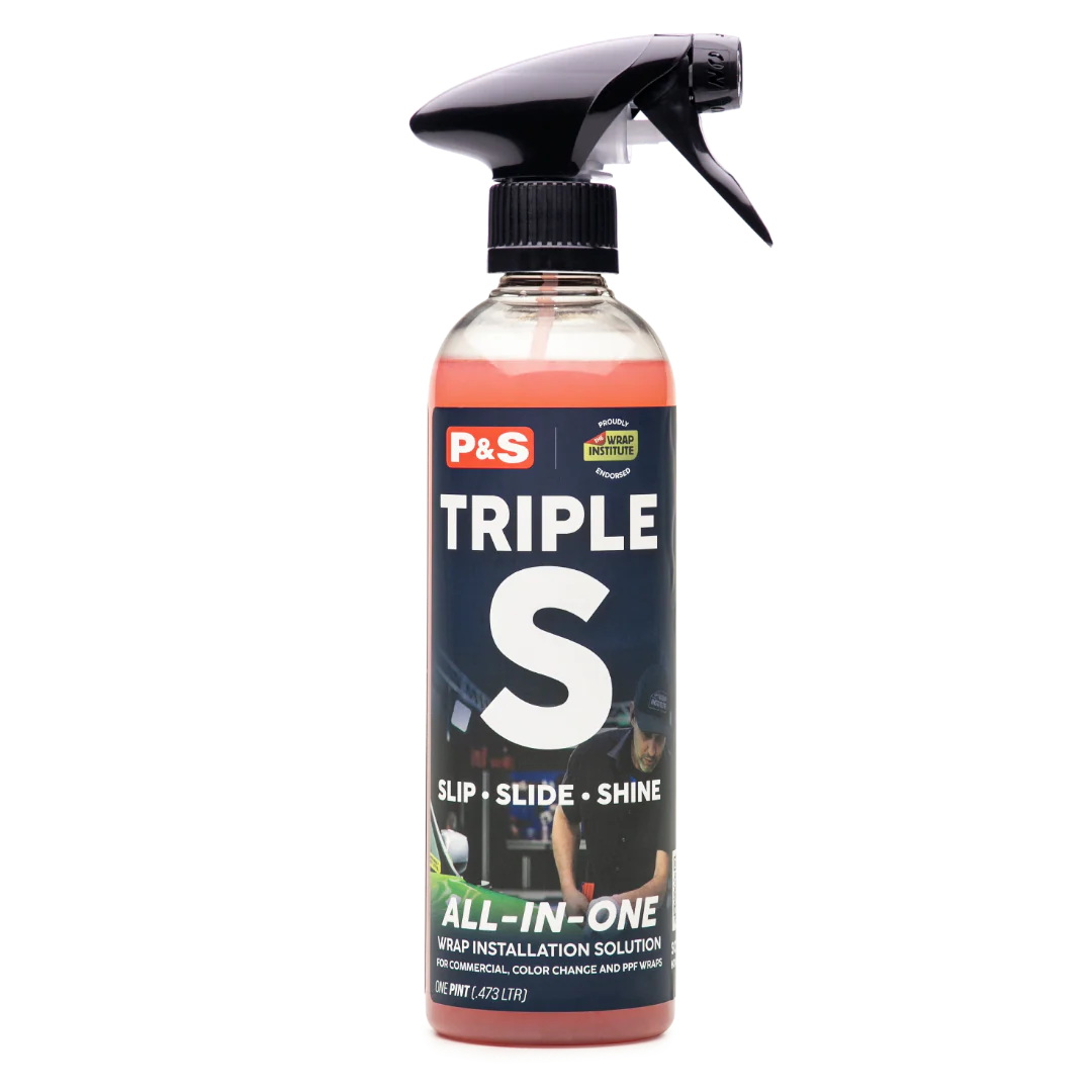 TRIPLE S is the ultimate all-in-one solution for the prep, install, and post install workflow when wrapping vehicles with commercial, color change, and PPF. TRIPLE S helps ensure the highest quality and workflow for installers while providing a superior finish that customers can see and feel. ALL IN ONE BOTTLE!
